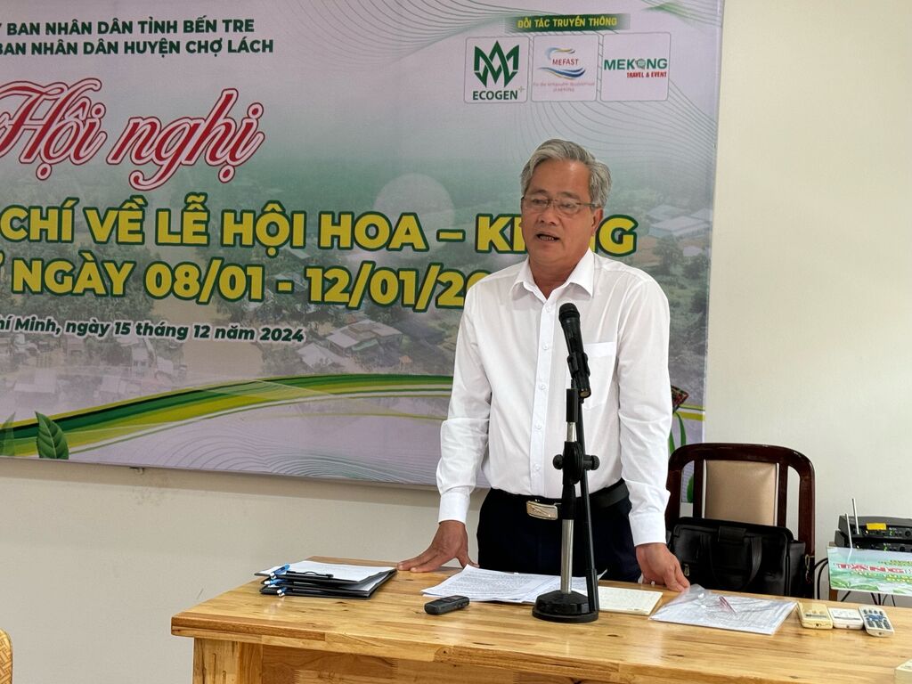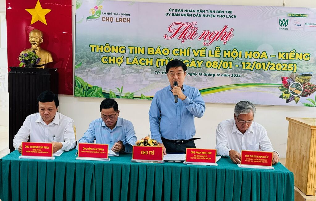 | Conférence de presse pour annoncer le Festival des fleurs et des ornements de Cho Lach 2025. |