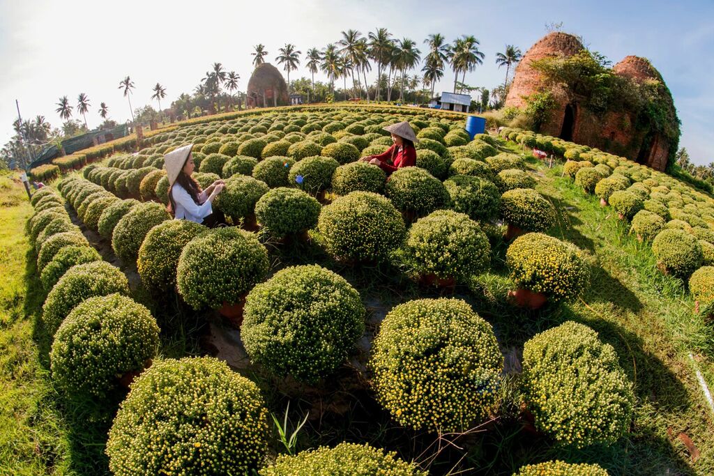 | Soin de fleurs dans le Village culturel et touristique de Cho Lach. |