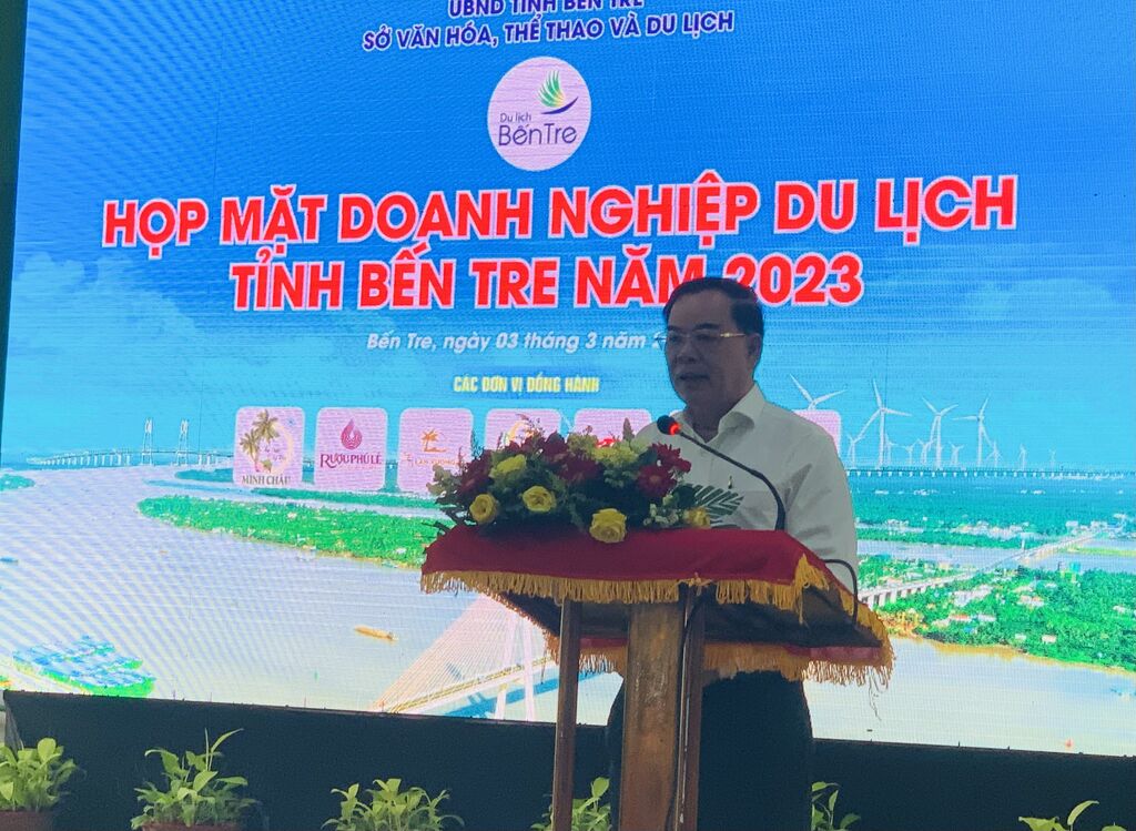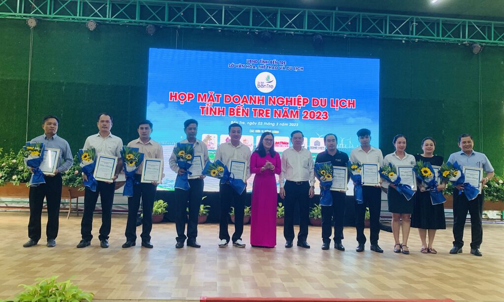 | Rencontre entre les dirigeants locaux et les représentants des entreprises touristiques de Bên Tre en 2023. |