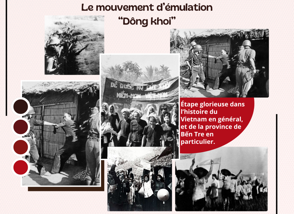 Le mouvement d’émulation "Dông Khoi" (soulèvement général) de 1960 reste l’un des repères les plus emblématiques de l’histoire révolutionnaire du Vietnam. En se soulevant massivement, les habitants de Bên Tre brisèrent l’emprise du régime de Ngô Dinh Diêm, lançant une dynamique de contre-offensive dans tout le Sud. Ce mouvement, à la fois militaire et politique, démontra la force du peuple et son aspiration à l’indépendance.