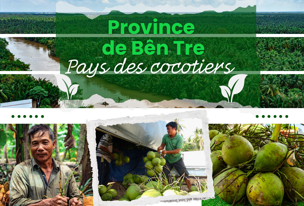 | Surnommée le "pays des cocotiers", la province de Bến Tre est réputée dans tout le Vietnam pour posséder la plus vaste et la plus ancienne superficie de cocoteraies du pays. |