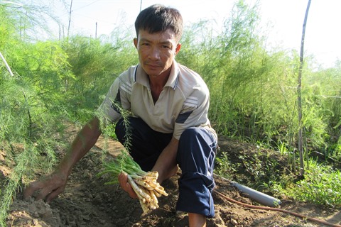 | Vu Van Thuân sur ses plantations d’asperges dans la commune de Xuân Hai, district de Ninh Hai, province de Ninh Thuân (Centre). |