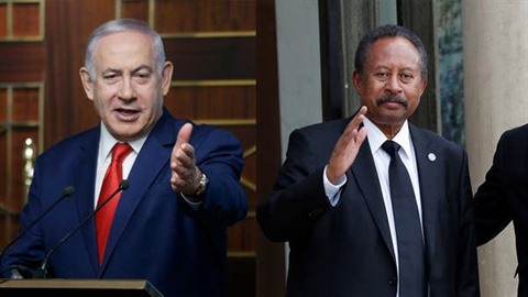 | Le Premier ministre israélien Benjamin Netanyahu (gauche) et son homologue soudanais, Abdalla Hamdok. |