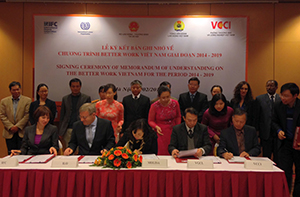 C’est l’objet d’un mémorandum signé le 18 février à Hanoi par le ministère vietnamien du Travail, des Invalides de guerre et des Affaires sociales, la Chambre de Commerce et d’Industrie du Vietnam, la Confédération générale des Travailleurs du Vietnam, l’Organisation mondiale du Travail (OIT), et la Société financière internationale (SFI).