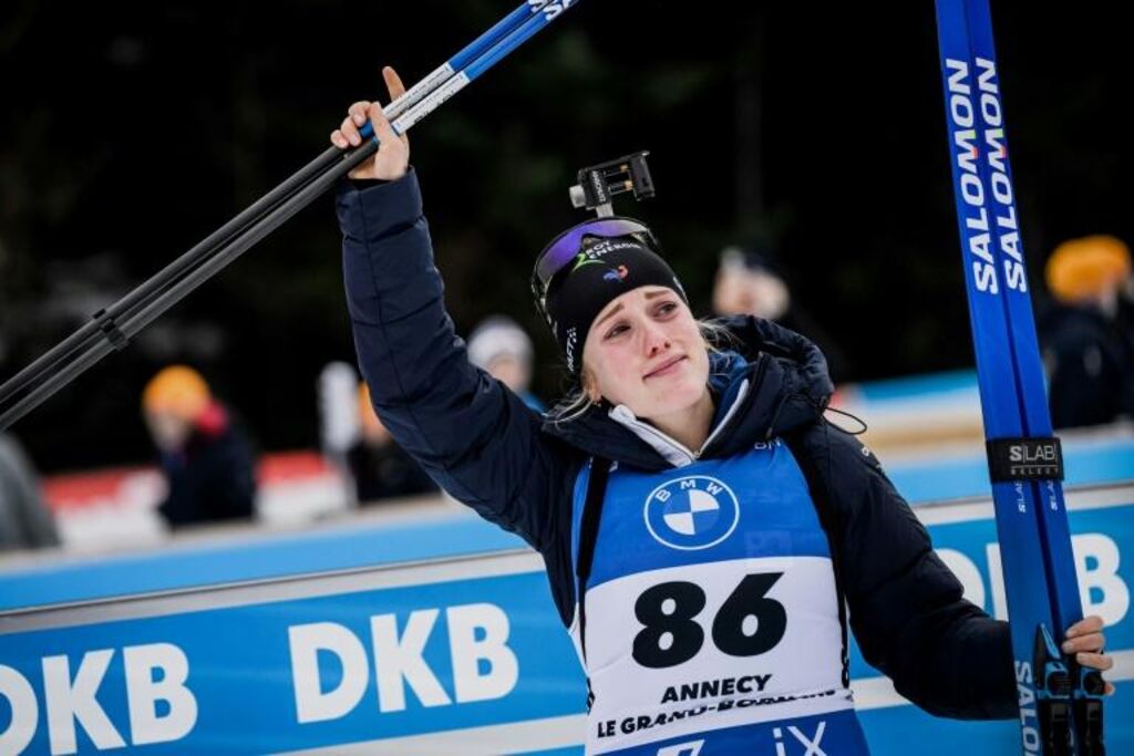 Partie avec le dossard 86, elle a aussi pu compter dans son dernier tour sur les encouragements sonores de Julia Simon, course déjà bouclée, avant d'être fêtée par ses coéquipières dans l'aire d'arrivée.