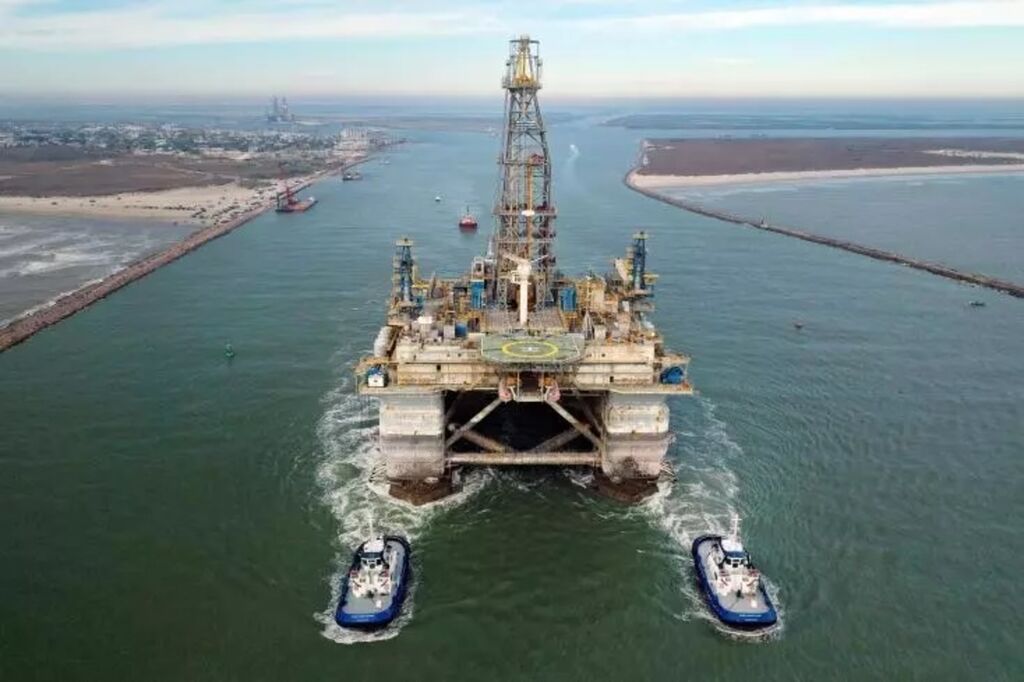 | Une plateforme pétrolière dans le Golfe du Mexique en décembre 2020 |