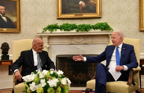 | Le président américain Joe Biden reçoit son homologue afghan Ashraf Ghani dans le Bureau ovale le 25 juin. |