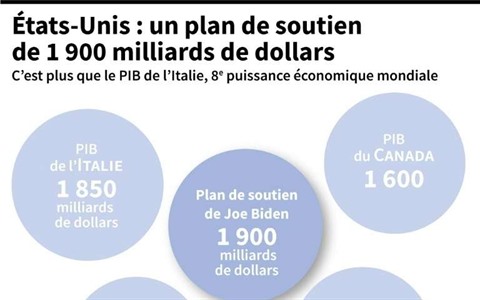 Malgré l'opposition en bloc des républicains, qui dénoncent des dépenses extravagantes et mal ciblées, les démocrates, majoritaires à la Chambre des représentants, ont adopté mercredi 10 mars un plan de 1.900 milliards d'USD, un montant vertigineux équivalant au PIB de l'Italie.