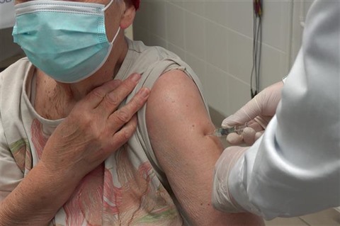 | Un Hongrois se fait vacciner contre le COVID-19 à Budapest, le 5 mars. |
