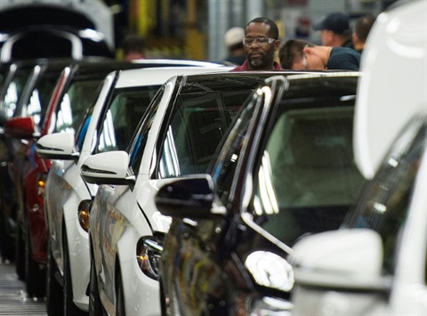 | Des employés inspectent des voitures dans une usine Mercedes-Benz à Vance, dans l'Alabama, le 8 juin 2017. |