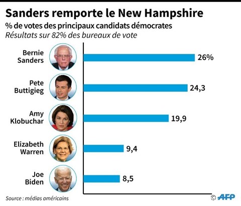 | Résultats partiels de la primaire démocrate du New Hampshire. |