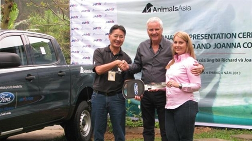 | Le couple australien Richard Collins et Joanna a fait don d’une auto au Centre de soins des ours de Tam Dao. |