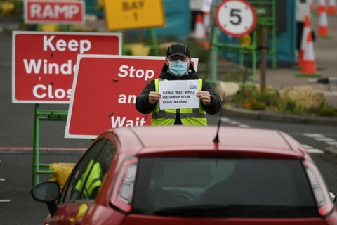 | "Drive test" organisé le 9 avril sur un parking à Gateshead, dans le Nord de l'Angleterre. |