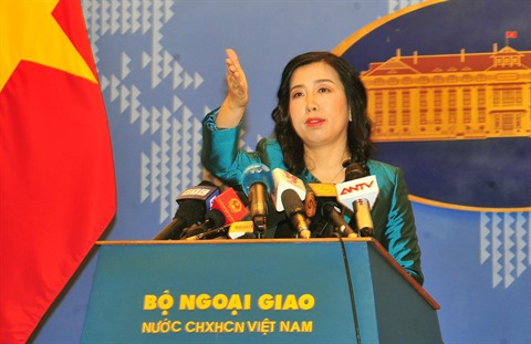 | La porte-parole du ministère des AE, Lê Thi Thu Hang, à la conférence de presse, le 14 juin à Hanoï. |