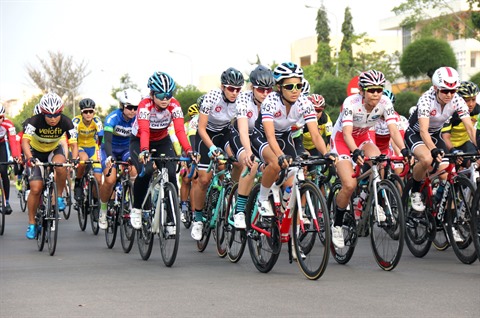 | Des cyclistes participant au tournoi international du cyclisme féminin de Binh Duong 2019. |