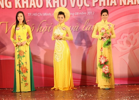 | Présentation de l'ao dài lors d’un concours de Miss Vietnam. |