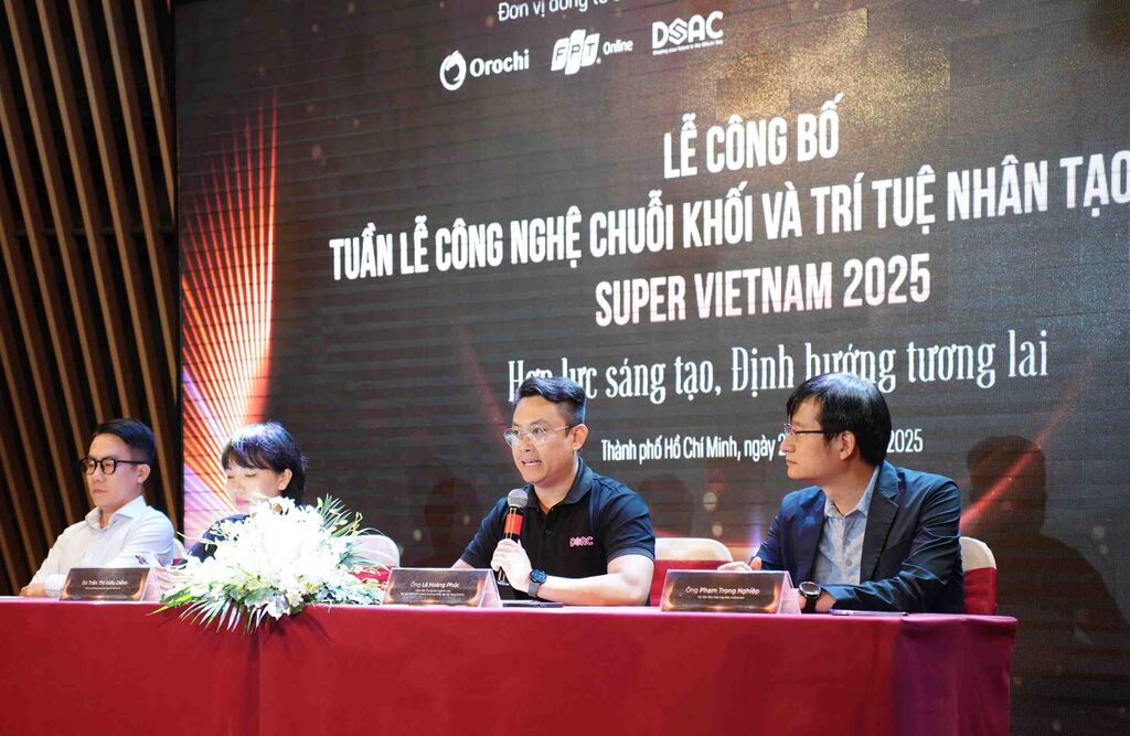 | Point presse pour annoncer la Semaine de la blockchain et de l'IA Vietnam 2025 à Dà Nang. |