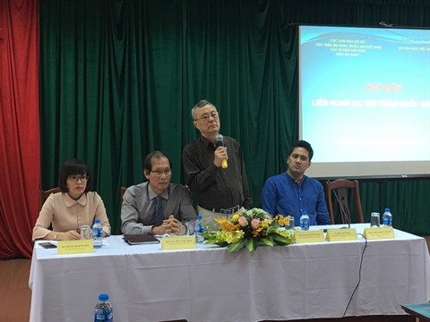 | Le chercheur et musicien Dang Hoành Loan (debout) lors de la conférence de presse sur le 4e Festival national du ca trù, le 23 octobre à Hanoï. |