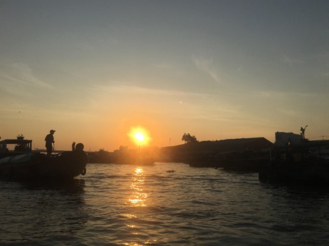 | Aube au marché flottant de Cai Rang, province de Cân Tho, une destination incontournable pour les touristes internationaux. |