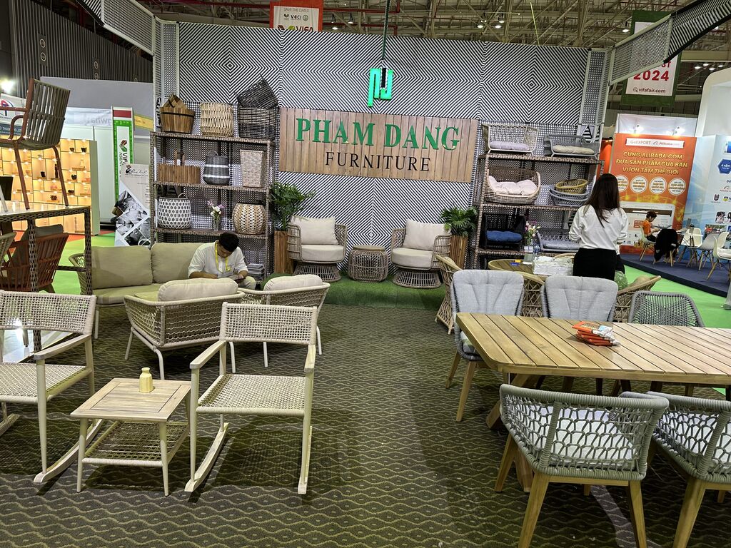 | Un stand d’exposition de meubles et produits artisanaux à VIFA EXPO 2023, tenue dans la mégapole du Sud. |