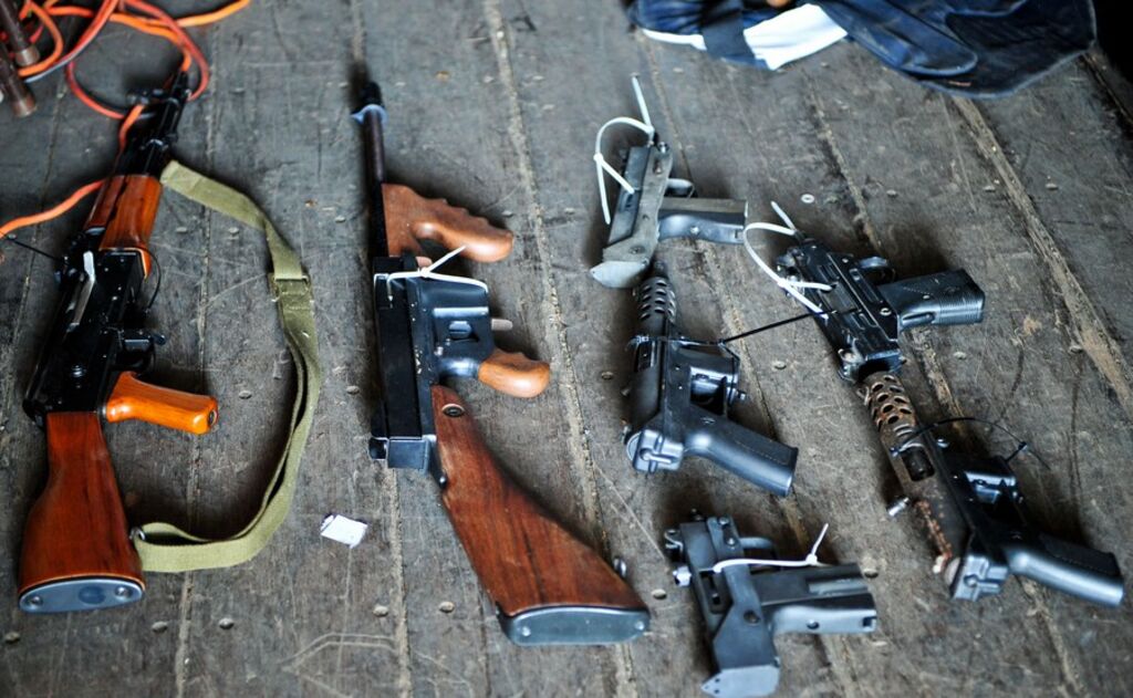 | Des armes à feu sont exposées lors d'un événement de rachat d'armes à feu à Los Angeles, aux États-Unis |