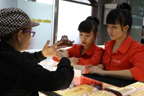 | Dans une magasin de vente au détail des produits en or, en agent et en pierres précieuses à Hô Chi Minh-Ville. |