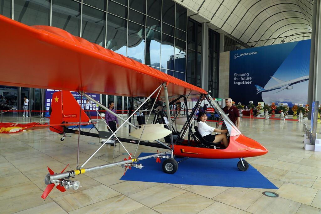 | Un avion exposé dans le cadre de la Foire internationale de l'aviation 2022 à Hanoï. |