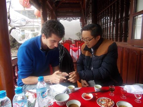 | Pour s’intégrer au Vietnam, Maxim (gauche), étudiant français, mise sur ses amis vietnamiens, dont Dung. |