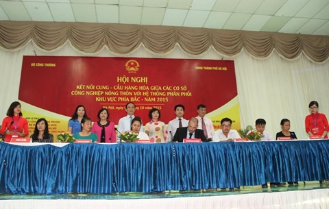 | La conférence «Connexion de l’offre à la demande entre établissements industriels dans les régions rurales et le réseau de distribution au Nord en 2015» a lieu le 1er octobre à Hanoi. |