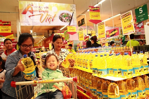 | Des consommateurs devant des promotions du programme "Excellente cuisine vietnamienne" de Big C. |