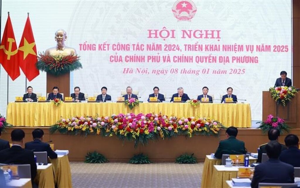 | Délégués à la conférence de synthèse des travaux du gouvernement et des autorités locales en 2024 et de la mise en place des tâches pour 2025, le 8 janvier à Hanoï. |