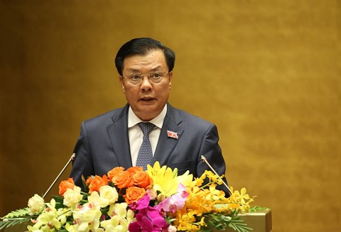 | Le ministre des Finances, Dinh Tiên Dung prend la parole lors la 7e session de l'Assemblée nationale tenue le 20 mai à Hanoï. |