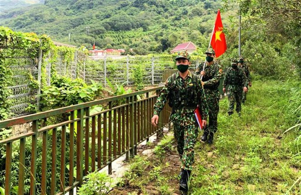 | Patrouille des garde-frontières vietnamiens au poste-frontières de Thanh Thuy. |