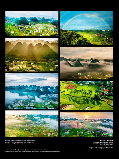 Selon le comité d’organisation, dans la catégorie, collection de photos, le premier prix Nuage et montagne de Bac Son est revenu à Nguyên Phung Chi. Le deuxième prix a été attribué à Un ancien style de banlieue de Hông Trong Mâu. Enfin, le troisième prix a été pour l’œuvre Mer du Vietnam de Nguyên Dinh Thanh. Deux prix d’encouragement ont complété ce palmarès : Hôi An, la perspective du ciel et Soie de Tân Châu, un écho du temps.