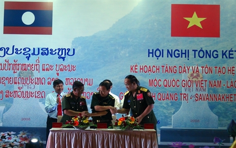 Les deux parties ont commencé la construction de la première paire de bornes frontalières le 22 juillet 2008. La dernière borne entre Quang Tri, Savannakhet et Saravane a été plantée quatre ans plus tard, parachevant la densification et la réhabilitation des bornes frontalières entre ces trois provinces plus tôt que prévu.