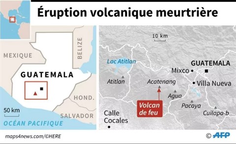 | Localisation du volcan de feu dont l'éruption a fait au moins 25 morts. |