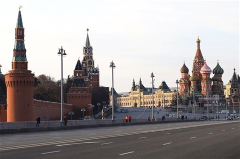 | Une rue désertée à Moscou. |