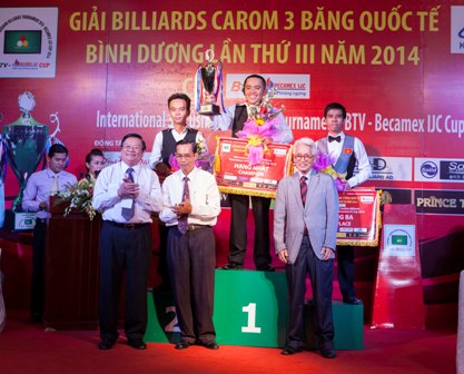 | Cérémonie de remise des prix du 3e tournoi international de billard français à trois bandes de Binh Duong - Coupe BTV Becamex IJC 2014. |