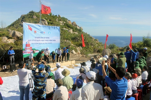 | Cérémonie de mise en chantier d'un mât pour le drapeau national sur l'île de Cù Lao Xanh, dans la province de Binh Dinh (Centre), le 8 juillet. |
