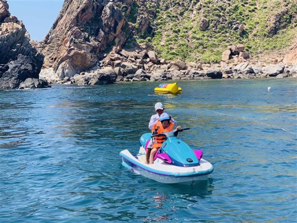| Des touristes dans la zone touristique maritime de Ky Co, à Binh Dinh (Centre). |