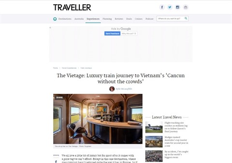 | Capture d'écran de l'article sur le site "Traveller". |