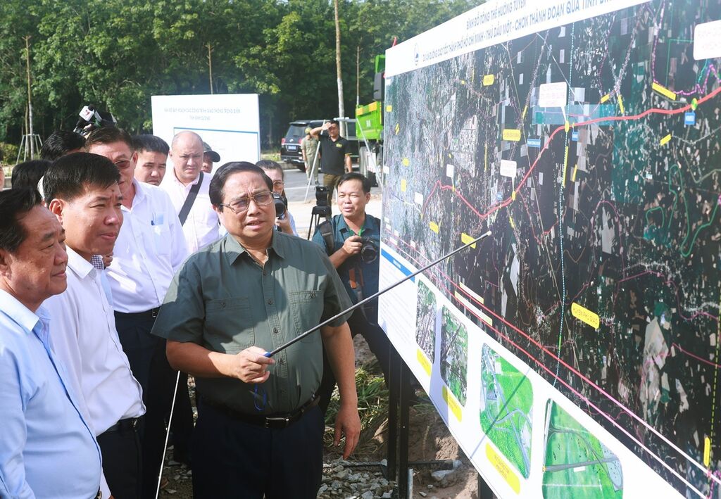 | Le Premier ministre Pham Minh Chinh a inspecté le tracé du projet d'autoroute Hô Chi Minh-Ville - Thu Dâu Môt - Chon Thành. |