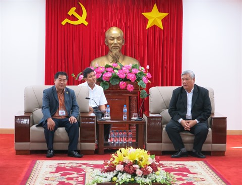 | Dang Minh Hung (droite), vice-président du Comité populaire de Binh Duong, et Kheng Hang Huon, secrétaire d’État du ministère cambodgien des Cultes et des Religions. |