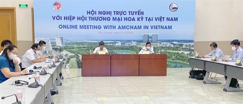 | Réunion en ligne le 7 octobre entre le Comité populaire de Binh Duong et la Chambre de commerce américaine au Vietnam (AmCham Vietnam). |