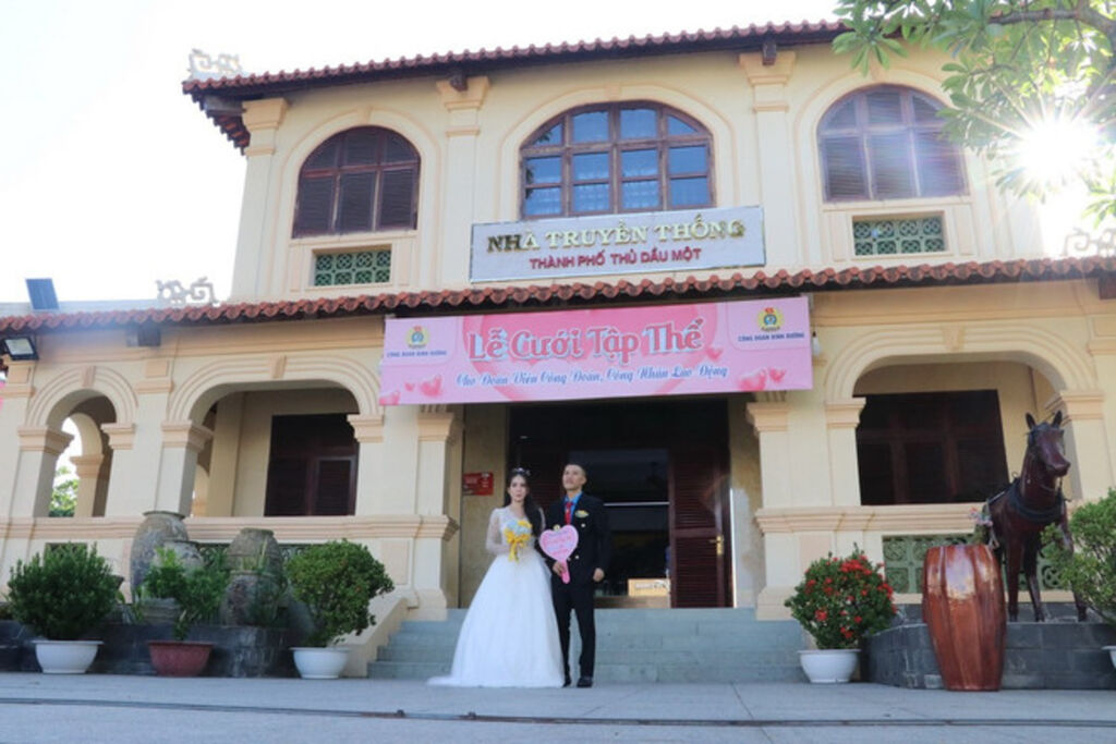 | Un couple prend la pose devant la Maison traditionnelle de la ville de Thu Dâu Môt, province méridionale de Binh Duong. |