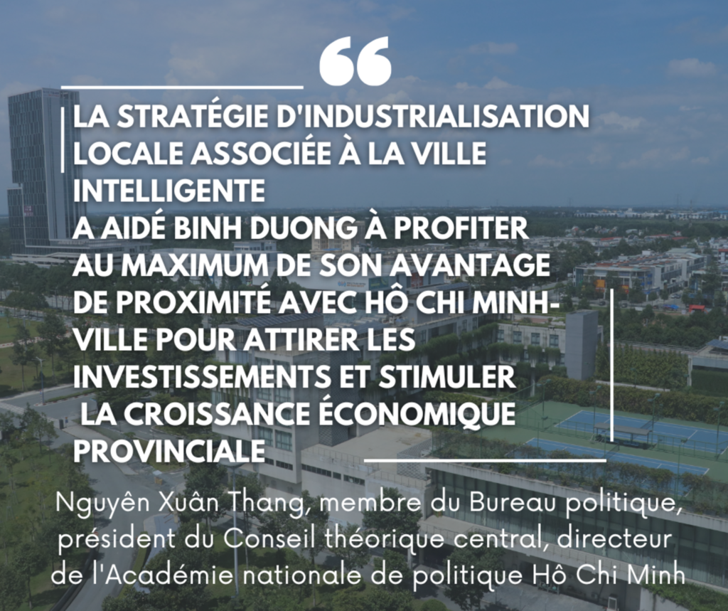 Dans sa stratégie de développement à long terme, Binh Duong vise à devenir une ville intelligente et un centre industriel vert de premier plan, en mettant l'accent sur la modernisation des infrastructures, le renforcement des liens régionaux et le développement de zones industrielles de haute technologie.