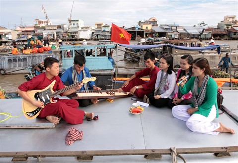 | Représentation du "đờn ca tài tử" sur le fleuve Cai Rang, ville de Cân Tho (Sud). |