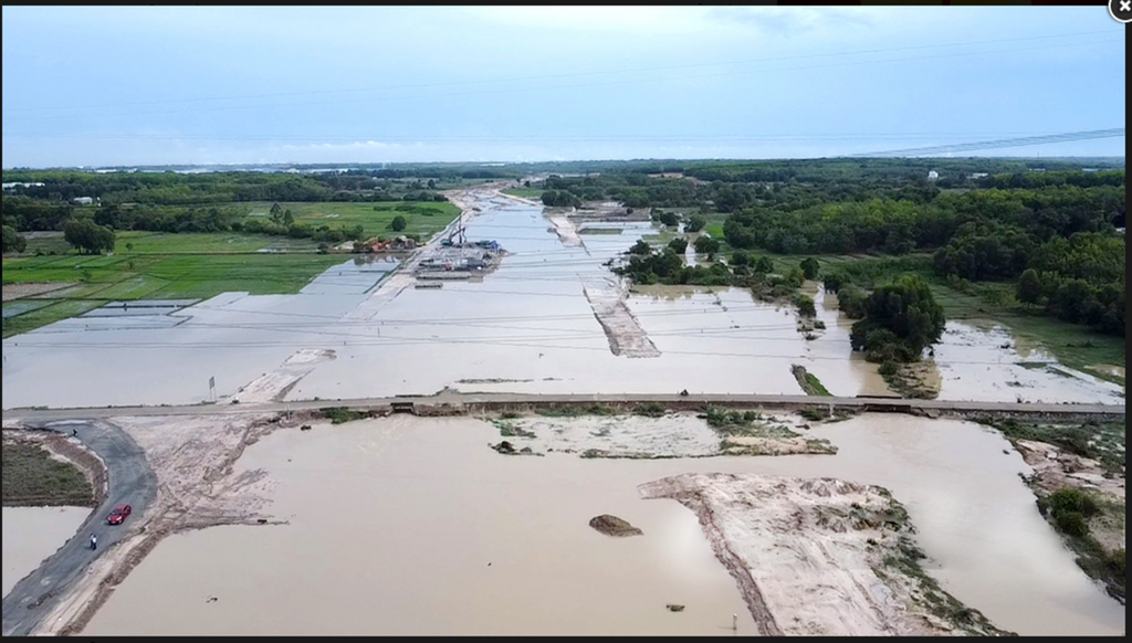 Cependant, de fortes pluies apparaissent souvent dans la zone, créant de nombreux obstacles à l’avancement des travaux. La quantité d'eau s'écoulant dans la ligne Suoi Cái inonde souvent tous les cadres de barrières de protection, les chantiers de construction ainsi que le tracé des travaux.
