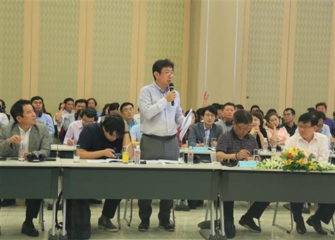 | Le représentant d'une entreprise sud-coréenne prend la parole lors du dialogue avec les autorités de la province de Binh Duong (Sud), le 30 juillet. |