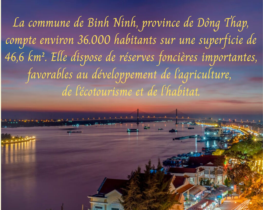 Nichée le long de la rivière Tiên (bras antérieur du Mékong), la commune de Binh Ninh fut un bastion de la révolution pendant les guerres de résistance. Grâce à sa position stratégique, elle servait de point de relais pour l’acheminement d’armes depuis l’ancienne province de Bên Tre vers les zones de combat, tout en abritant des organes administratifs des provinces de My Tho et de Go Công, aujourd’hui rattachées à Dông Thap.